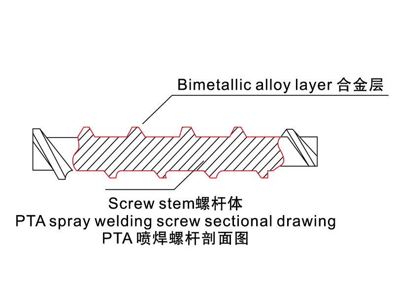 雙金屬螺桿:母材 38CrMoAlA、31CrMoV9( 國(guó)外)